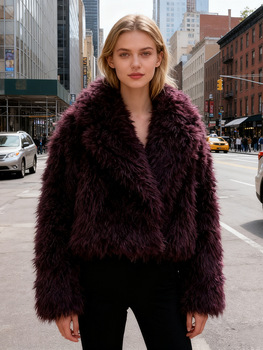 패션 빨간 여성 코트 2025 새로운 우아한 인공 모피 긴 소매 따뜻한 두꺼운 짧은 재킷